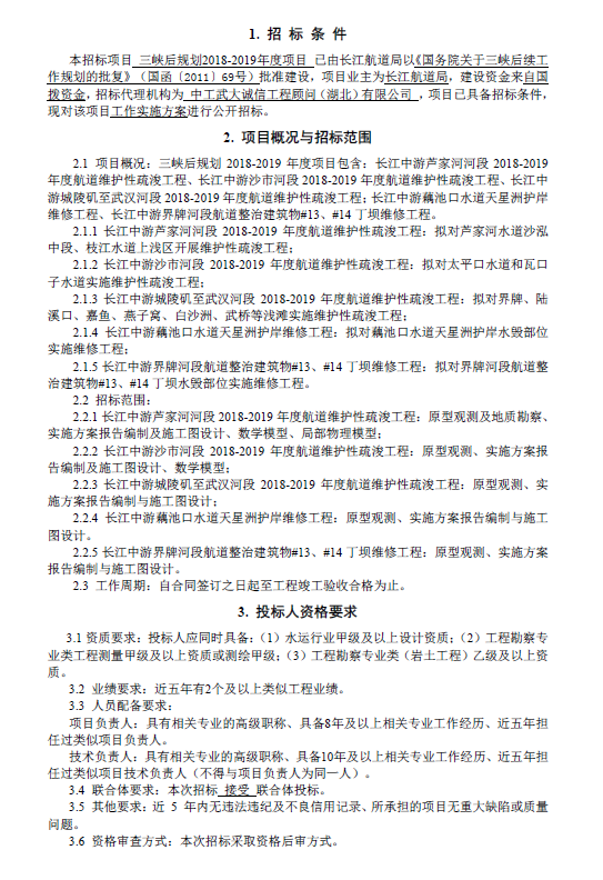 三峡后规划2018-2019年度项目工作实施方案招标公告