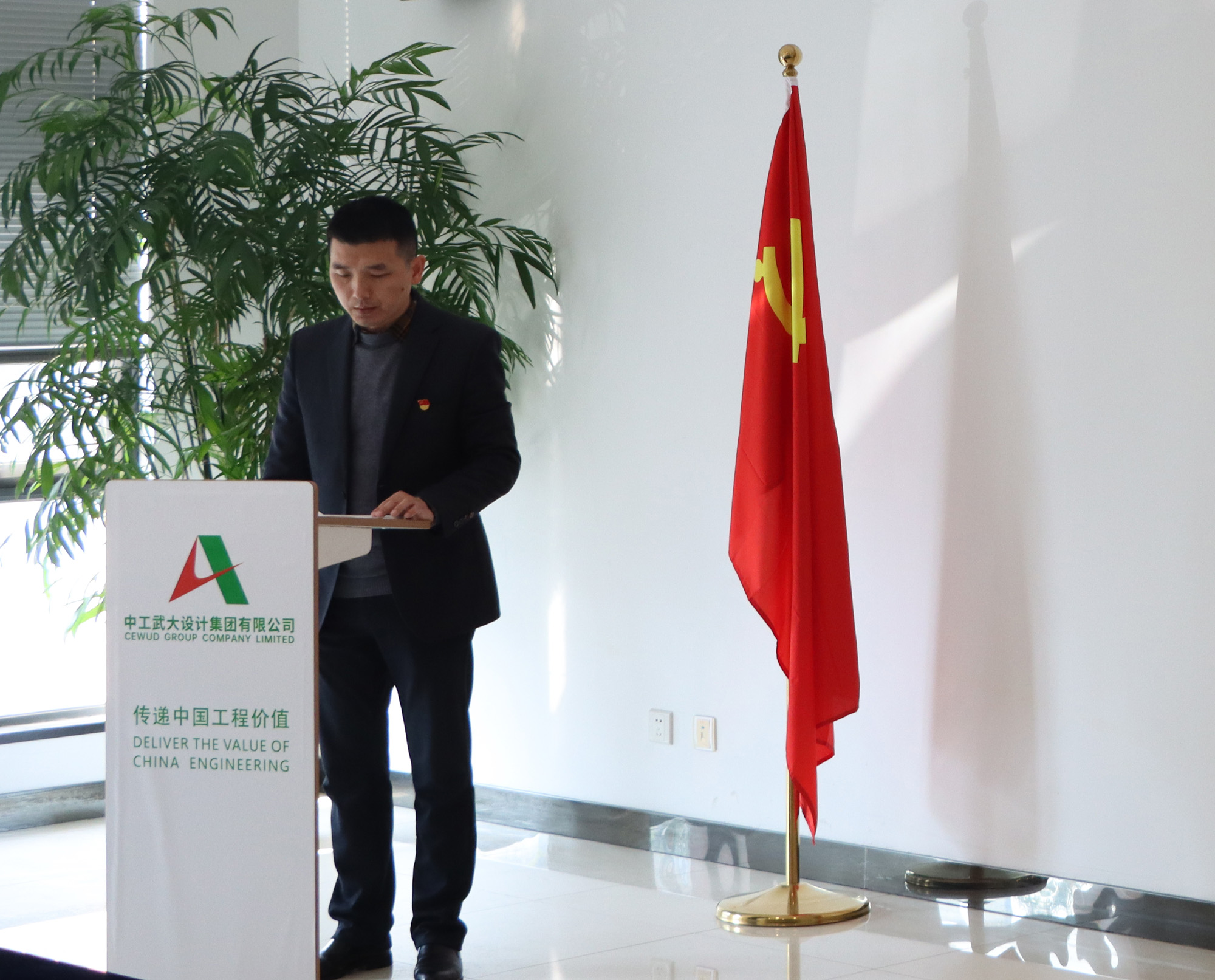 12月21日下午,公司党总支部委员会举行2021年第二批新党员入党宣誓仪式。公司党总支部组织委员、技术总监李志勇、中工武大诚信工程顾问(湖北)有限公司党员及入党积极分子参加仪式。