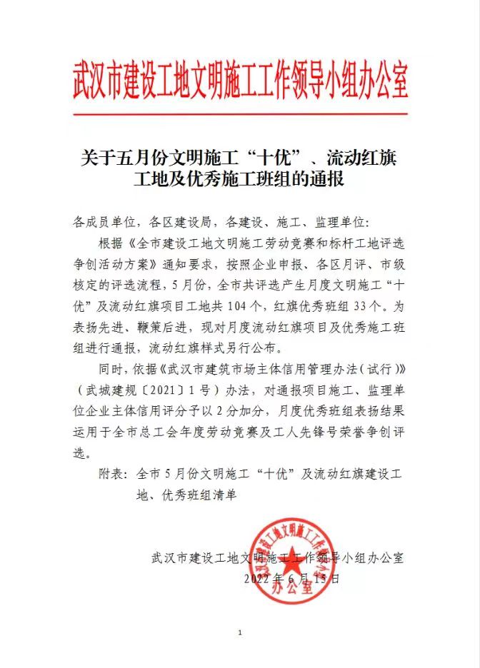 一流电网国盛路项目获评全市五月份安全文明施工“十优”及流动红旗项目称号