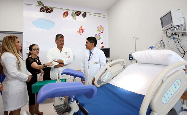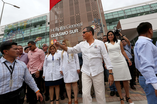 科雷亚总统在厄瓜多尔卫生部长维罗尼卡.埃斯皮诺沙、国家工程管理局部长阿曼多.博奥格斯等政府官员的陪同下,参观了医院急诊区、门诊病房、重症监护室、手术室等区域,并向医护人员和病人表示热情问候。在随后举行的开业庆典仪式上,科雷亚总统宣布该医院正式投入使用,并高度赞扬中工国际及参建单位为该项目建成并投入使用所做出的贡献。向参加广大民众表示该医院的投入使用,将对提高瓜亚地区整体医疗卫生水平起着举足轻重的作用。