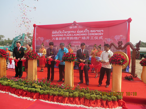 老挝当地时间2014年02月27日上午9点30分,由我公司承担项目管理的老挝万象新世界购物广场项目,隆重举行开工仪式。中工国际工程股份有限公司董事长罗艳、中华人民共和国驻老挝领事馆参赞、万象市市长等领导出席了开工仪式。